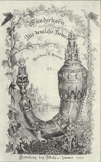 民謡集『少年の魔法の角笛 第2巻』(アルニム、ブレンターノ編纂、1809年、ハイデルベルク)全3巻で、ドイツ全土で採集された723編の民謡を収録。ゲーテ、ハイネ、アイヒェンドルフといった詩人、ブラームス、マーラーら作曲家に多大な影響を与えた。